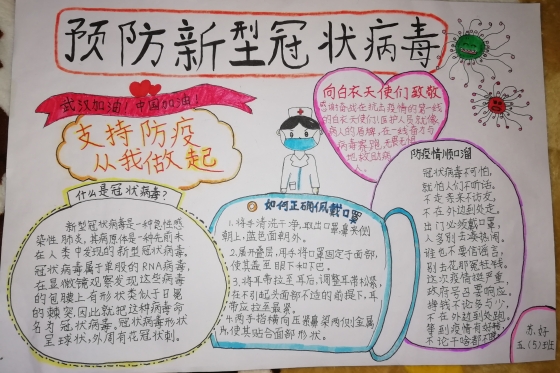 女儿的手抄报《预防新型冠状病毒》,她花了一个下午完成的,这是老师布置需在家里完成的作业。