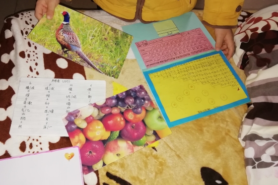两个小孩,这些天一直在家里做手工。今天,女儿还特别为她弟弟做了一台纸板笔记本电脑。有以前打印的图片,还有声母表、韵母表、乘法表……这些资料,可以随时塞进屏幕更换看,好创意!